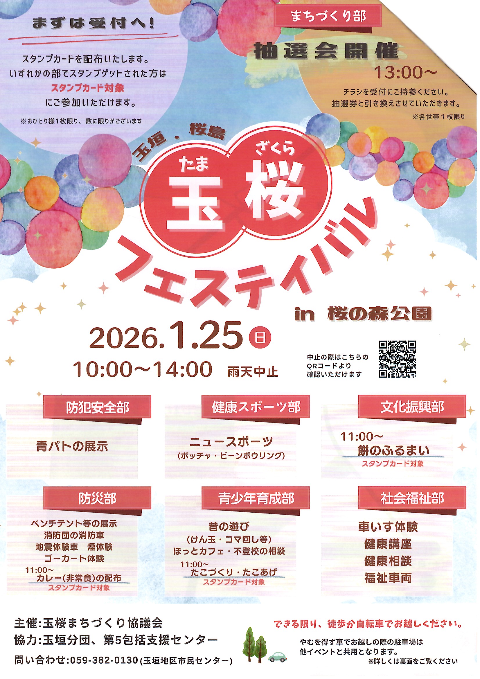 玉垣消防団の消防車展示等、まちづくり部「お楽しみ抽選会」もあります