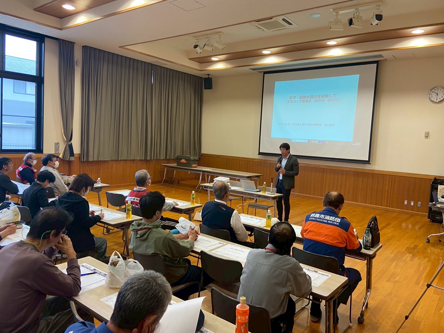 会議の中で防災危機管理課の職員から地震に対する心構えを聞きました。